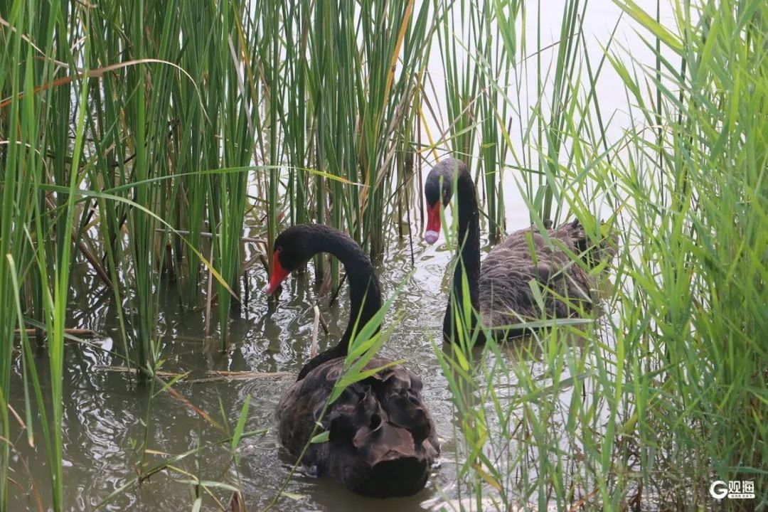 晶瑩的水珠從碧綠的葉尖滑落,墜入澄澈的湖面,漾起圈圈漣漪。黑天鵝優(yōu)雅地游弋在波光粼粼的水面,它們時(shí)而低頭梳理羽毛,時(shí)而將脖頸彎成優(yōu)美的弧度,輕啄水面,蕩開層層碎銀般的漣漪。蘆葦蕩間,鳥兒歡快地啼鳴,清脆的聲音此起彼伏,似是在為這場夏雨的停歇而歡唱。