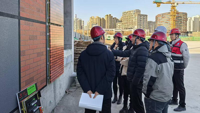 嶗山一中是嶗山區(qū)教育資源提質(zhì)增效的重要配套工程之一。針對嶗山一中面向道路一側(cè)和內(nèi)庭院一側(cè)的不同立面適配需求,分局會同院士總師團隊多次深入項目施工現(xiàn)場,就建筑外立面材質(zhì)、幕墻分隔等關(guān)鍵要素,組織現(xiàn)場論證與樣品選定,精準(zhǔn)制定“差異化”解決對策與“階梯式”推進計劃,全力保障項目外觀品質(zhì)與設(shè)計調(diào)性統(tǒng)一,為學(xué)校師生提供舒適溫馨的校園環(huán)境。